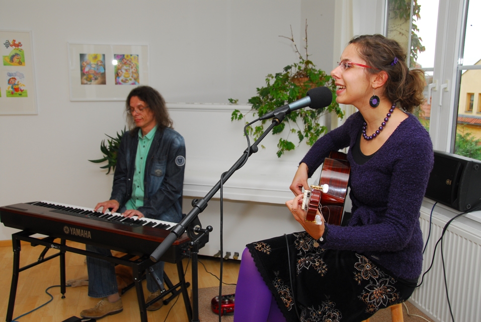 3.9.2010 - MDDM Úvaly - Výstava ilustrací pro děti Ladislavy Pechové, úvodní slovo Jiří Tyller, hudba Markéta Zdeňková a Zdeněk Zdeněk
